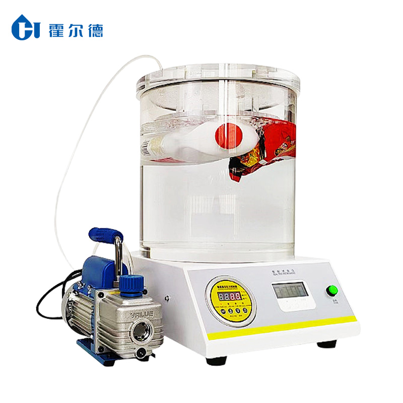 本機(jī)通過對(duì)真空室抽真空,使浸在水中的試樣產(chǎn)生內(nèi)外壓差,觀測(cè)試樣內(nèi)氣體外逸情況,以此判定試樣的密封性能;通過對(duì)真空室抽真空,使試樣產(chǎn)生內(nèi)外壓差,觀測(cè)試樣膨脹及釋放真空后試樣形狀恢復(fù)情況,以此判定試樣的密封性能。