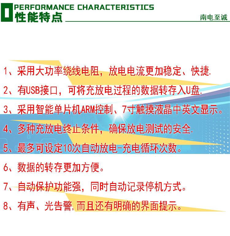 >自動(dòng)保護(hù)功能,設(shè)定充放電時(shí)長到、充放電容量到、蓄電池電壓低于設(shè)定的保護(hù)電壓、負(fù)載連線出現(xiàn)異常等自動(dòng)停止放電并報(bào)警,同時(shí)自動(dòng)記錄停機(jī)方式。