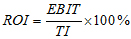 項(xiàng)目投資收益率是指項(xiàng)目達(dá)到設(shè)計(jì)能力后正常年份的年息稅前利潤(rùn)或營(yíng)運(yùn)期內(nèi)年平均息稅前利潤(rùn)(EBIT)與項(xiàng)目總投資(TI)的比率。總投資收益率高于同行業(yè)的收益率參考值,表明用總投資收益率表示的盈利能力滿足要求。