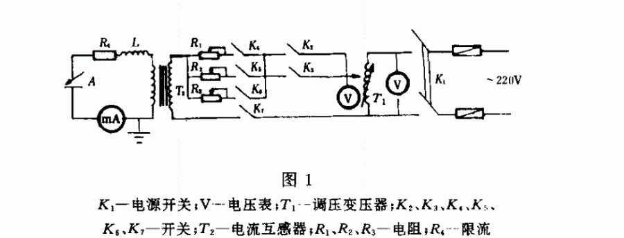 連續(xù)高壓小電流耐電弧儀:該儀器系由調(diào)壓變壓器,電流互感器,交流毫安表、鎢電極、限流電阻,計(jì)