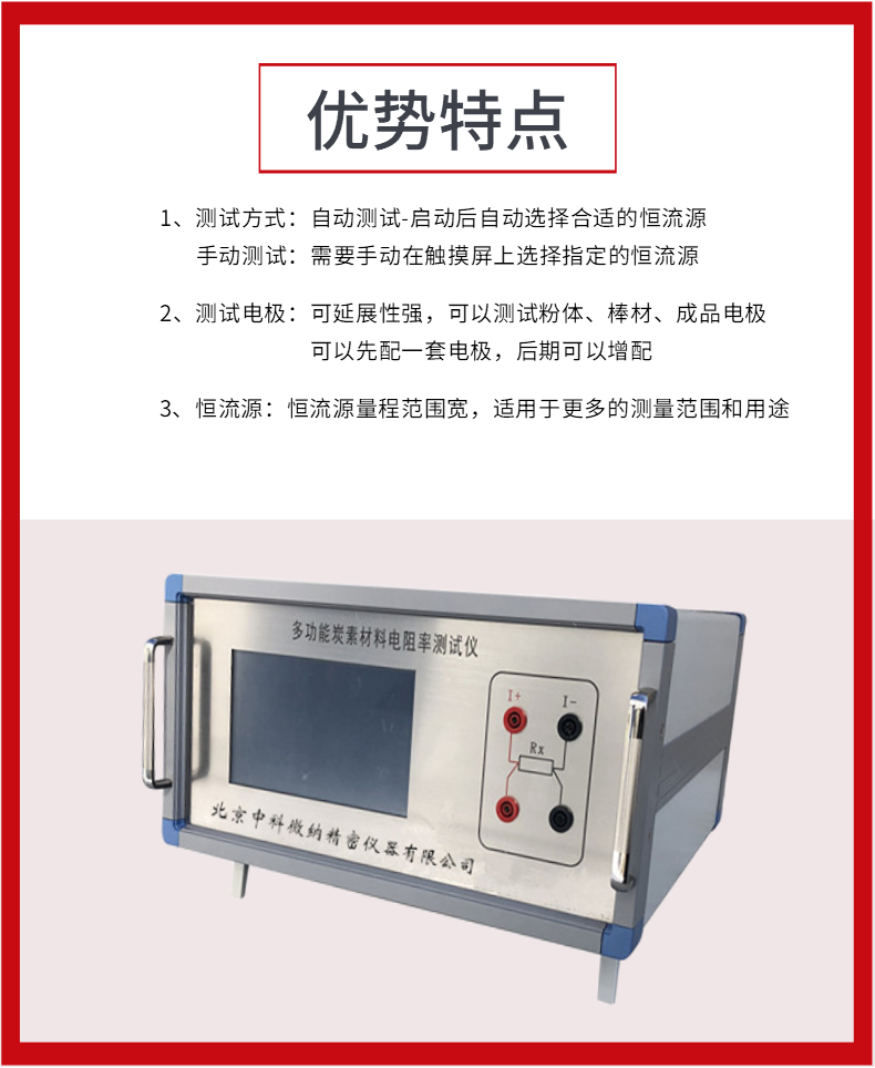 多功能炭素材料電阻率測試儀主機(jī)為通用試驗(yàn)儀器,可以選配多種測試工裝及測試電極,來選擇適合自己當(dāng)前測試需求的配置,同時(shí)還可以為后期的其它類型材料測試,進(jìn)行拓展和延伸,本儀器是一臺一機(jī)多用、配置靈活、功能強(qiáng)大的高精度電阻率測試儀器。