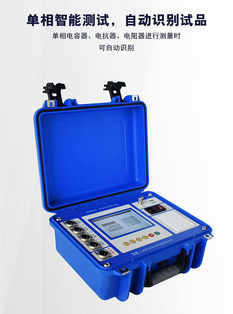 儀器可對單相電容器、電抗器、電阻器進行測量,同時單相測量時還可選擇自動測試,由儀器自動判斷試品類型。