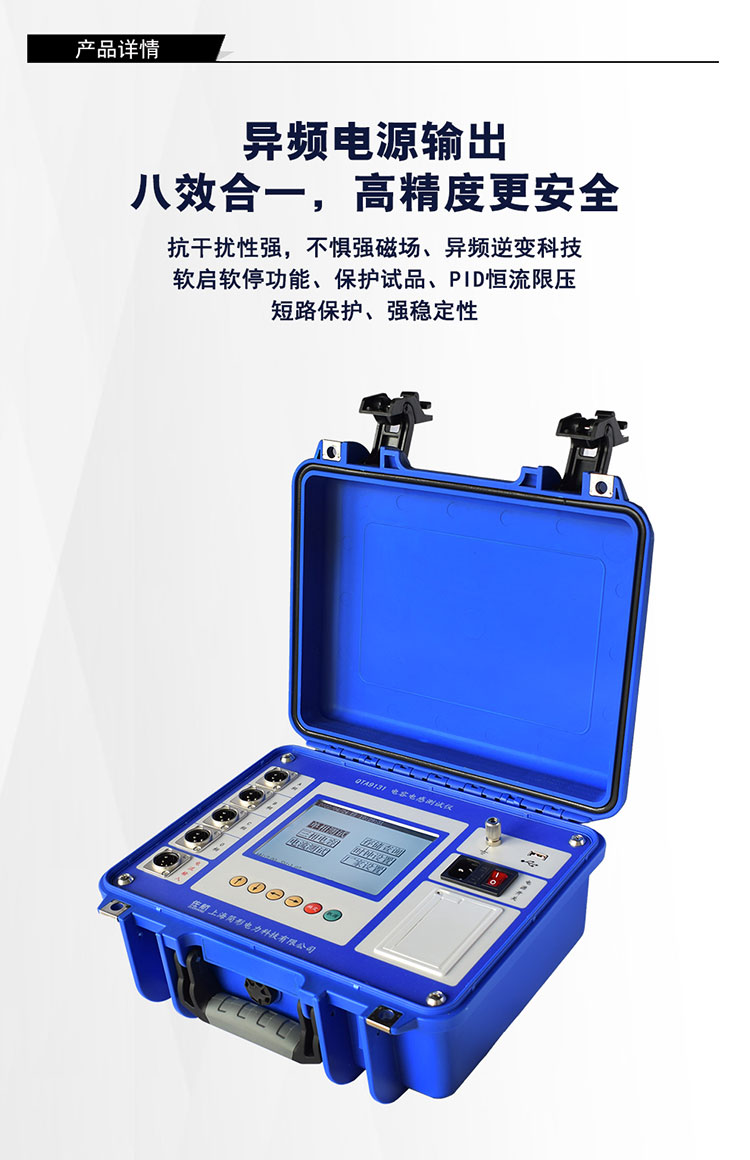 儀器使用異頻電源輸出進行測試,大大提高了現(xiàn)場的抗干擾能力,可在高強度磁場中進行測試而精度不受影響;異頻電源采用先進的逆變技術(shù),具有軟啟、軟停功能,大大減少對試品的沖擊,更好的保護試品;同時電源輸出采用先進的PID調(diào)節(jié)算法進行恒流限壓輸出,更加強了測量的精度和穩(wěn)定性,同時輸出短路也不會損壞儀器。