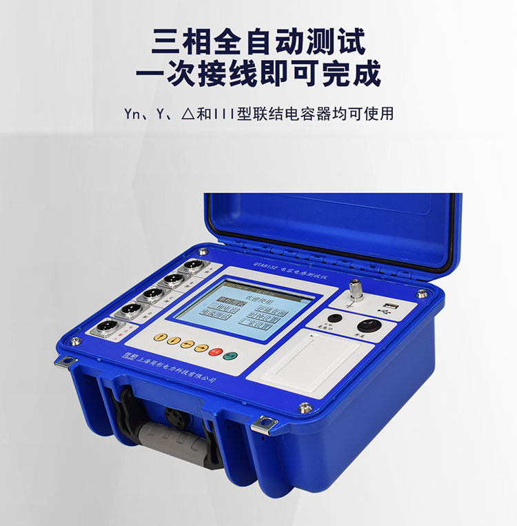 儀器具有三相電源輸出及接口,可對(duì)三相Y型聯(lián)結(jié)電容器、三相Yn型聯(lián)結(jié)電容器、三相三角型聯(lián)結(jié)容器、三型III聯(lián)結(jié)電容器進(jìn)行一次接線,即可完成三相電容測(cè)試,并對(duì)分相電容分別進(jìn)行測(cè)試計(jì)算,簡單方便,大大提高了現(xiàn)場使用人員的工作效率。