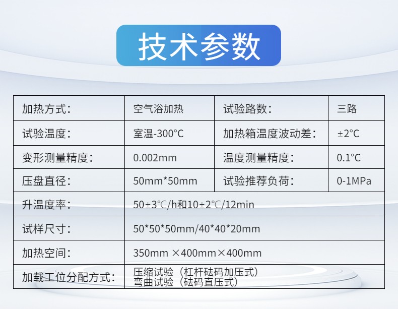主要用于測試硬質(zhì)泡沫在溫度和負荷條件下的壓縮蠕變性能