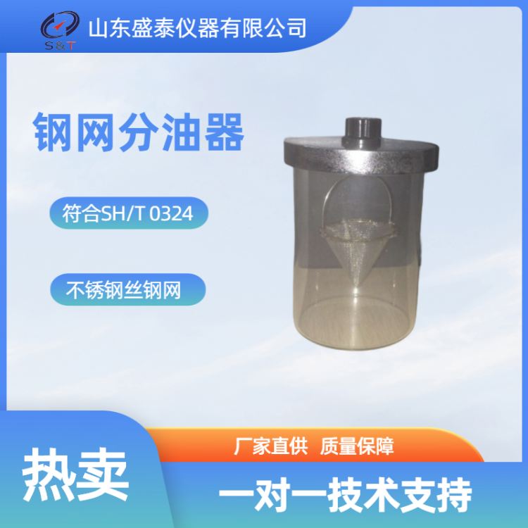 鋼網(wǎng)分油器按照國家石油化工行業(yè)標準《SH/T 0324-92、ASTM D 6184潤滑脂鋼網(wǎng)分油測定法(靜態(tài)法)》的規(guī)定設計制造,用于測定潤滑脂在提高溫度下的分油傾向。